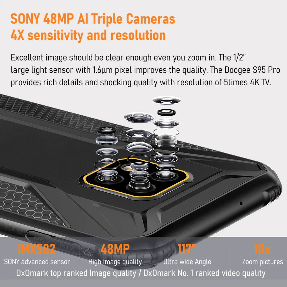 New Arrival IP68/IP69K DOOGEE S95 Pro Modular Rugged Mobile Phone 6.3inch Display 5150mAh Helio P90 Octa Core 8