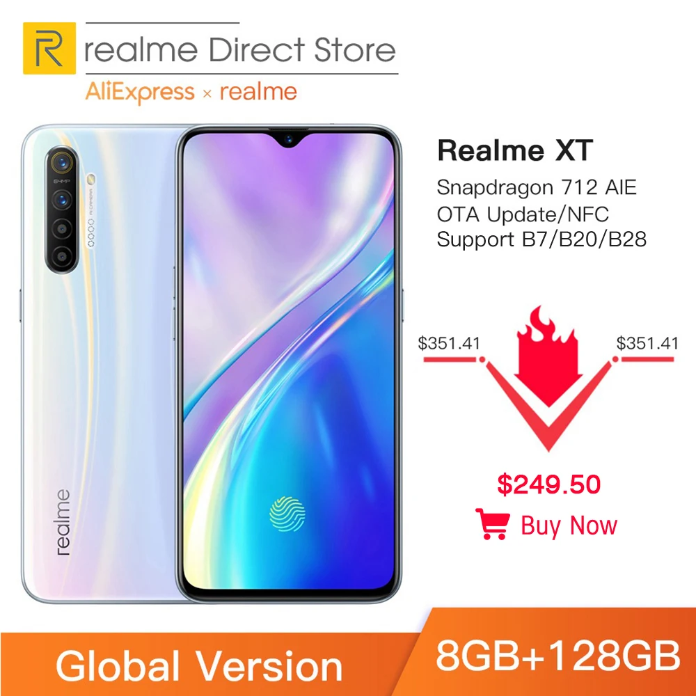 New Arrival Global Version Realme XT 8GB RAM 128GB ROM NFC Mobile Phone Snapdragon 712 AIE 64MP Quad Camera 400