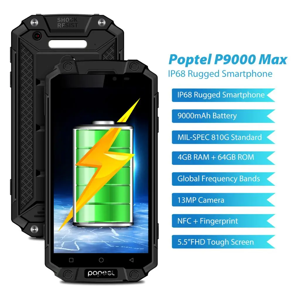 Global version unlock smartphone 9000 mah Poptel p9000 max 4G/64G NFC power bank phone can ODM waterproof rugged smartphone :Click Here
