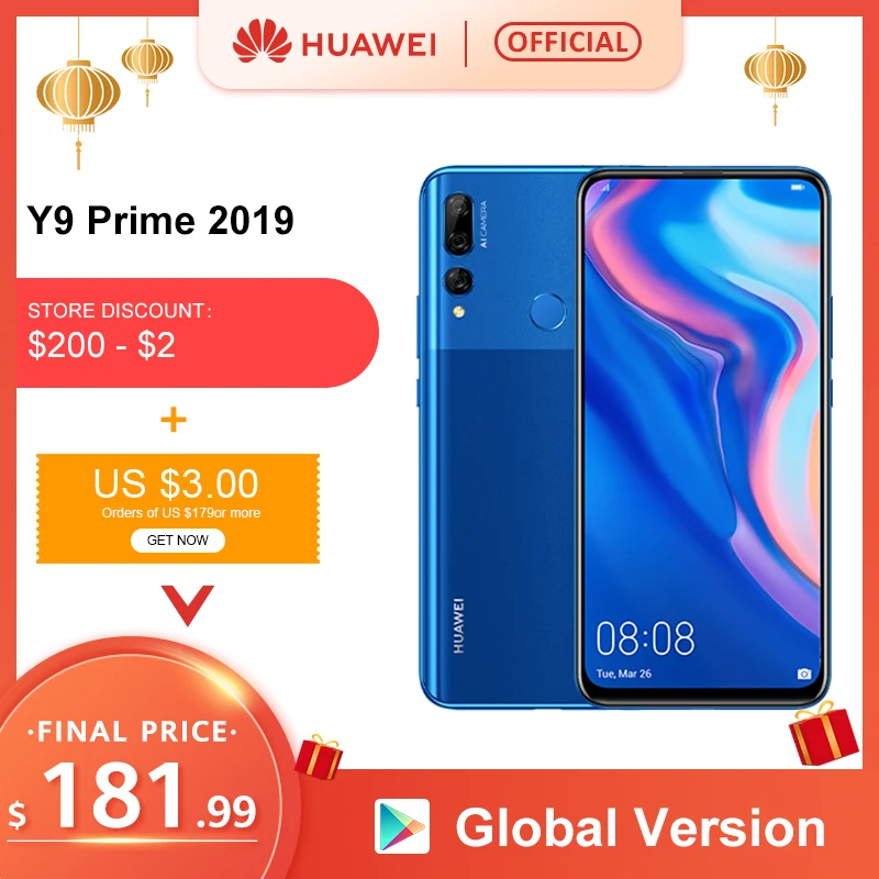 Global Version Huawei Y9 Prime 2019 Smartphone AI Triple Rear Cameras 4GB 128GB Auto Pop Up Front Camera 6.59“ cellphone :Click Here