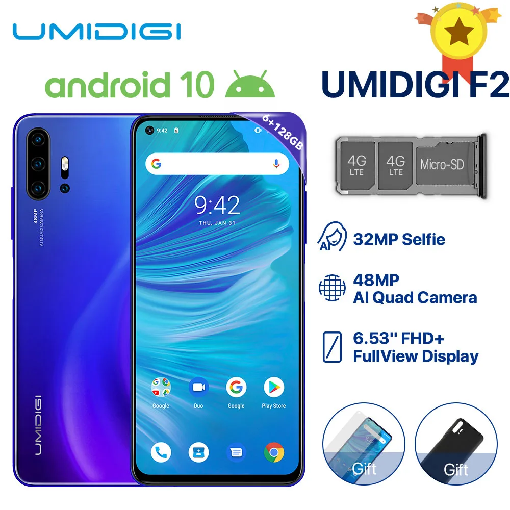 New UMIDIGI F2 Phone Android 10 Global Version 6.53" FHD+ 6GB 128GB 48MP AI Quad Camera 32MP Selfie Hel