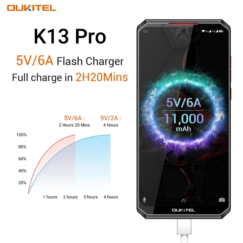 OUKITEL K13 Pro Android 9.0 Mobile Phone OTA NFC Fingerprint Smartphone 6.41" 19.5:9 Screen MT6762 4G RAM 64G ROM 5V/6A 11000mAh :Click Here