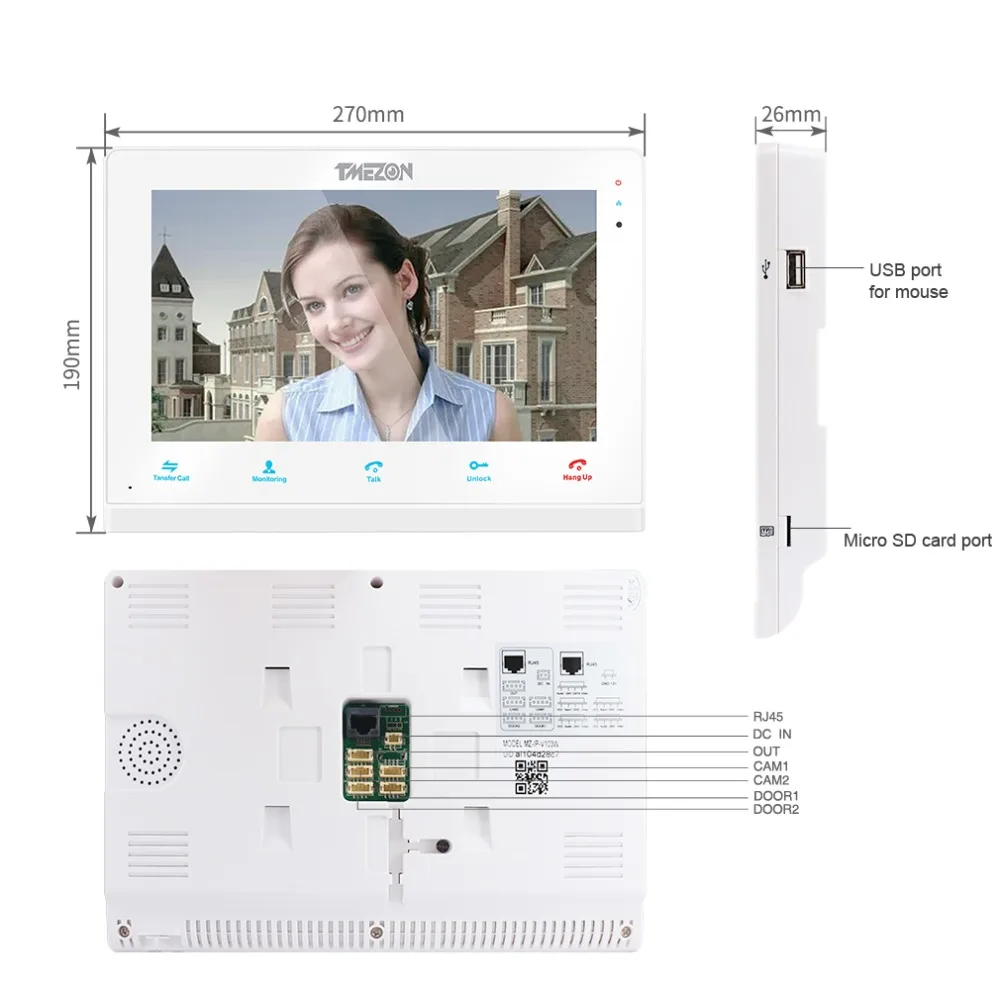 TMEZON Wireless/Wifi Smart IP Video Doorbell Intercom System ,10 Inch+7 Inch Screen Monitor with 1x720P Wired Door Phone Camera :Click Here