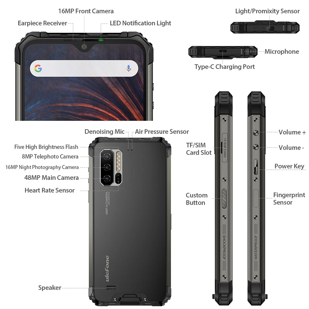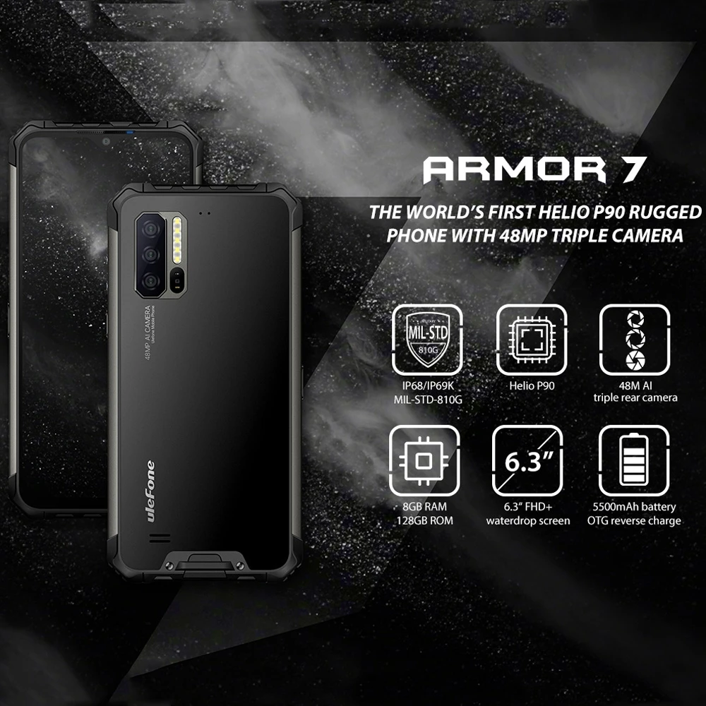 Best Product Ulefone Armor 7 IP68 Rugged Mobile Phone Helio P90 Octa Core 8GB+128GB Android 9.0 48MP 4G LTE Came
