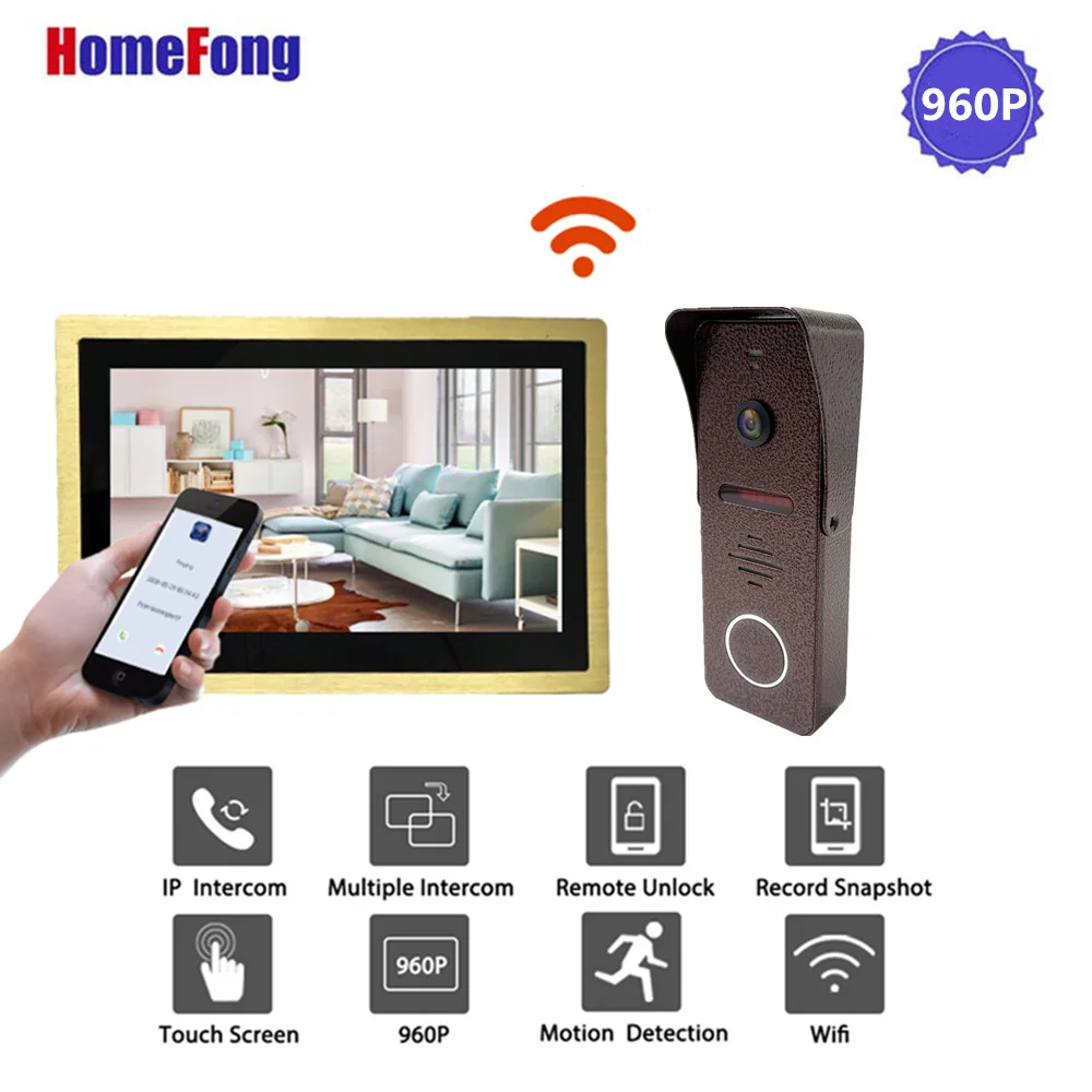 Homefong 10 Inch IP Video Intercom Wi-fi Video Door Phone Door Bell 960P Touch Screen Home Intercom System Waterproof Record :Click Here