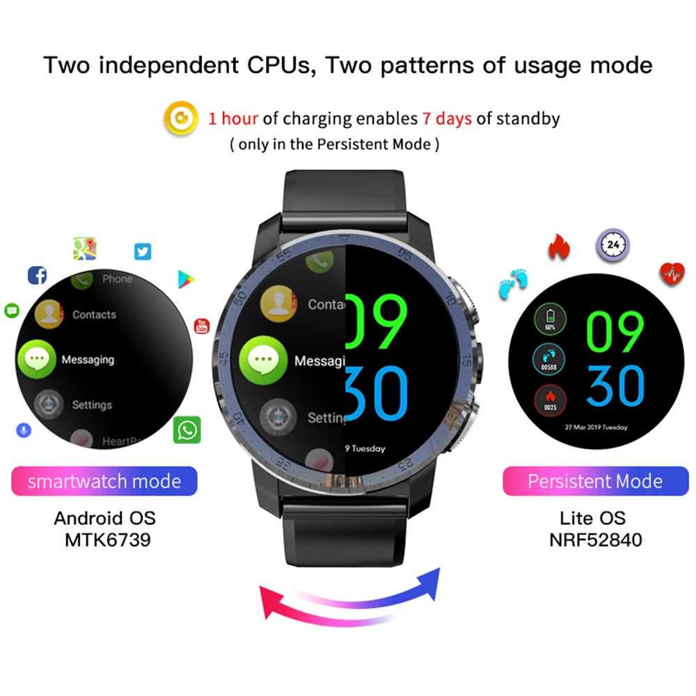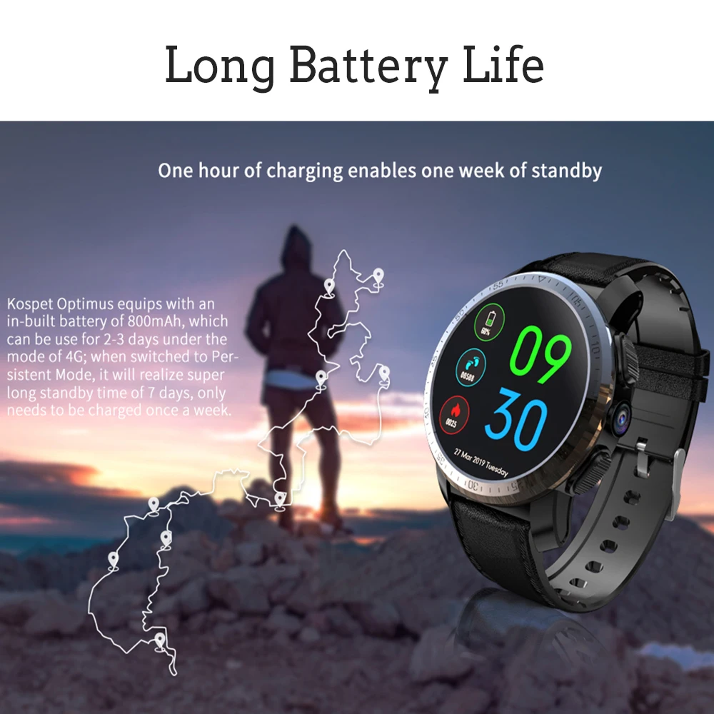 KOSPET Optimus Pro 3GB 32GB 800mAh Battery Dual Systems Smartwatch 8.0MP 1.39" Android7.1 4G Smart Watch Phone for iPhone Xiaomi :Click Here