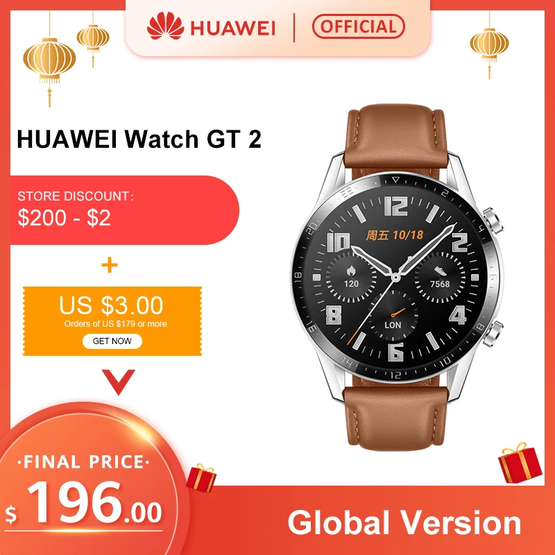 In Stock Global Version HUAWEI Watch GT 2 GT2 GPS 14 Days Working Waterproof Phone Smart Call Heart Rate Tracker For Android iOS :Click Here
